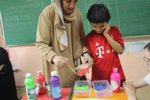 L’atelier s’est déroulé dans un cadre chaleureux, où les enseignants ont mis à disposition une grande variété de supports à colorier : dessins d’animaux, paysages, scènes de la vie quotidienne, formes abstraites et figures géométriques. Les enfants ont utilisé crayons de couleur, feutres, pastels, et même peinture, pour donner vie à leurs idées avec enthousiasme. Ce fut un réel plaisir de voir chaque élève plongé dans son univers artistique, concentré sur les détails, choisissant soigneusement les couleurs, mélangeant les teintes, et mettant tout son cœur dans son dessin.